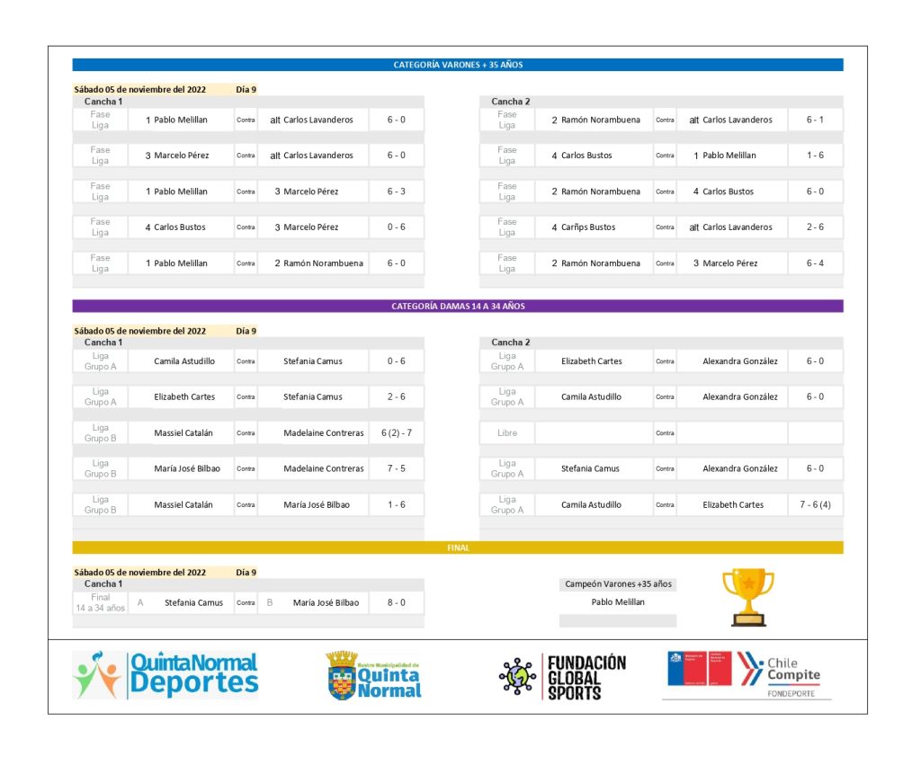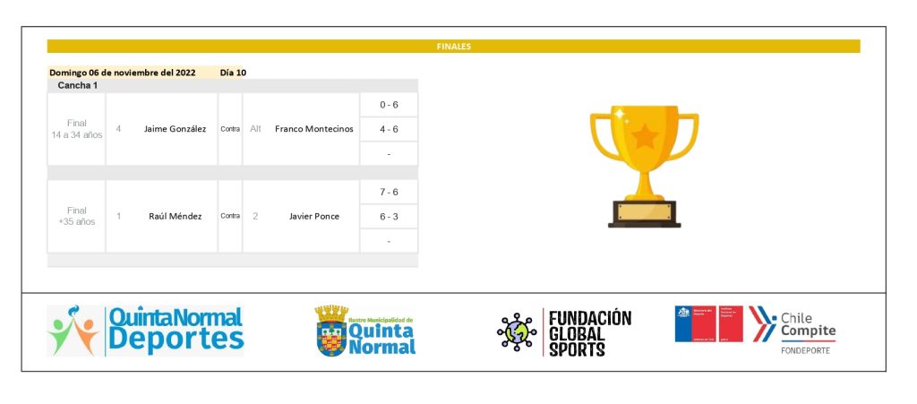 Competencia organizada por Fundación Global Sports en colaboración con la Corporación de Deportes de Quinta Normal. El proyecto tiene como objetivo masificar el tenis a través de la organización de una competencia gratuita, que permita a la gente que por distintos motivos comúnmente no participa de circuitos ni torneos de tenis, vivir la experiencia de competir en 4 fechas a lo largo del año, enfrentarse con gente de distintos niveles, tener un ranking y fecha tras fecha buscar superarse para ser el mejor al finalizar el año.